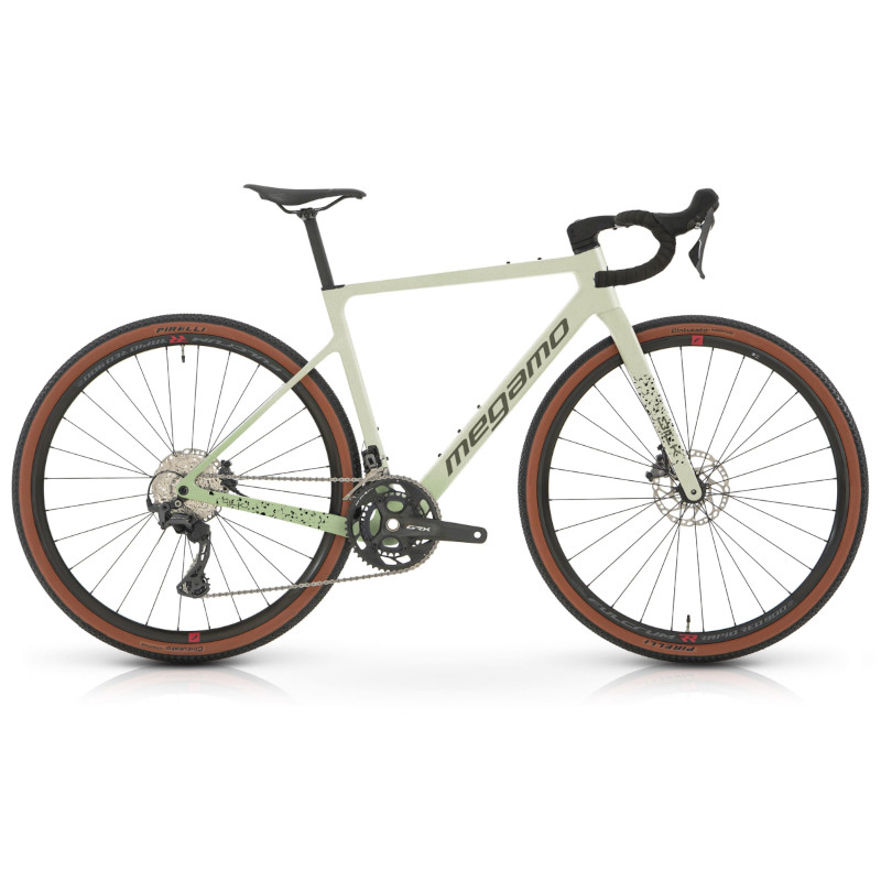 Das Megamo Silk 08 ist ein ultraleichtes Carbon-Gravelbike, perfekt für ambitionierte Rennfahrer und Abenteurer. Der hochfeste Advanced Composite-Rahmen mit integrierter Kabelführung plus Shimano GRX 2×12 garantiert Effizienz und Zuverlässigkeit auf langen, anspruchsvollen Strecken. Für solide Performance sorgen Pirelli 700x40c-Reifen und RAPID RED 900 2WF-R C22 Laufräder, die auch bei grobem Untergrund Grip & Speed liefern. Dank UCI-konformer und hochwertigem Cockpit mit 16° Flare navigierst du technisch anspruchsvolles Terrain souverän. Leicht, schnell und funktional – das Silk 08 ist bereit für dein nächstes Gravel-Abenteuer!